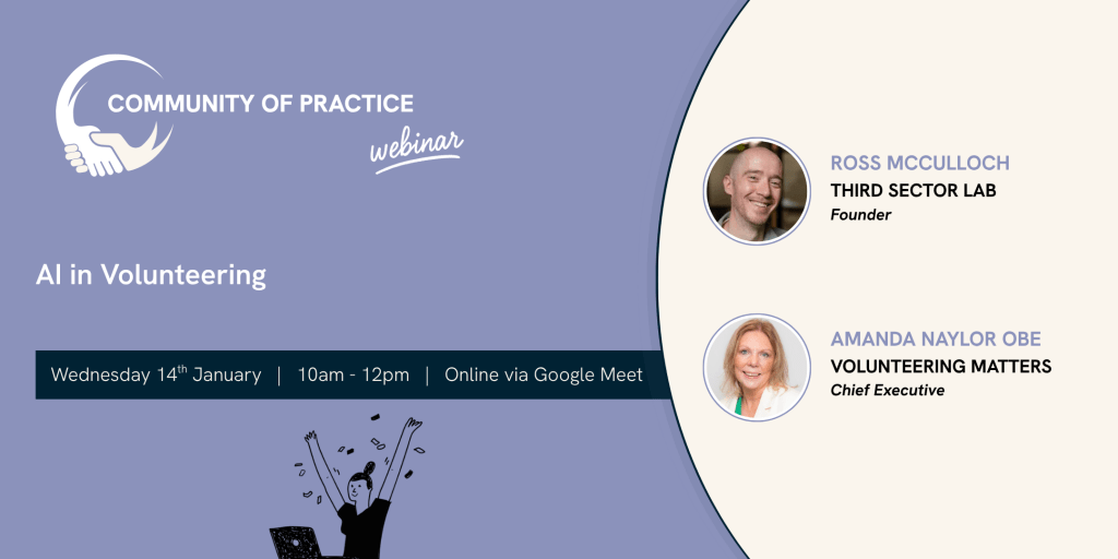 At our next event, on Wednesday 14th January, we’ll be taking a look at AI in Volunteering.